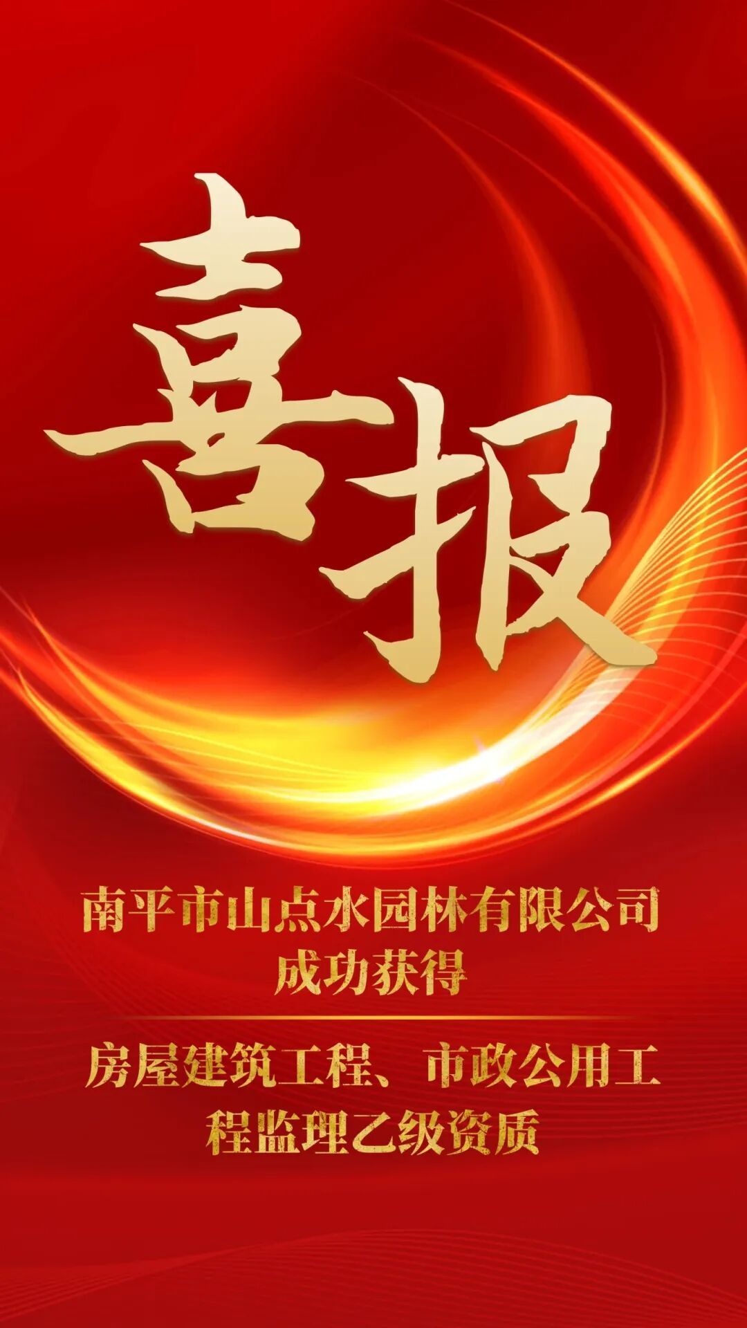 喜報:南平市山點水園林有限公司獲得房屋建筑工程、市政公用工程監(jiān)理乙級資質(zhì)