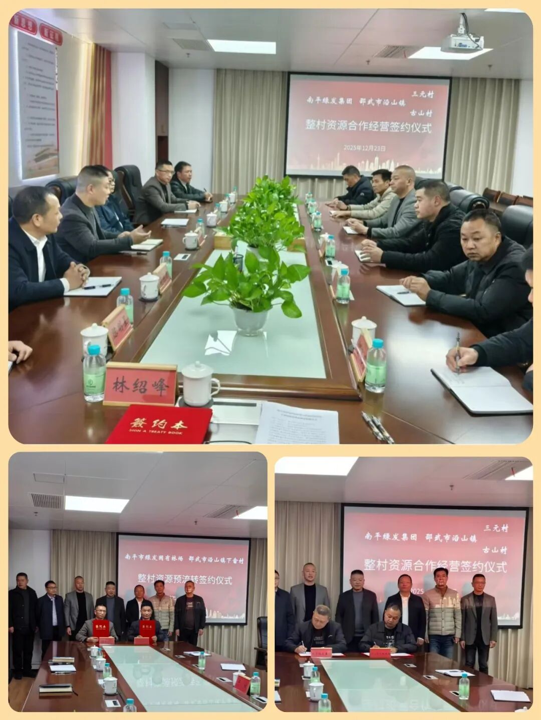 為進一步梳理并盤活全市農業農村資源,落實本市“森林生態銀行”合作模式的提質擴面工作,扎實推動鄉村全面振興,12月23日,綠發集團與邵武市沿山鎮下畬村、三元村、古山村簽署整村資源合作經營協議。此次合作經營采用綠發集團3類“林場+”合作模式中的“林場+公司+村”模式,合作面積約35200畝。